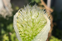 冷蔵庫で数週間,出番がなく放置され,外皮はかさかさに乾燥していたネギ.ダメ元で土にさしておいた.枯れる気配はなくむしろ元気が出てきた.春になったらご覧のような立派なネギ坊主.根本には新たに芽が出てきている.栽培されてるネギでも放置すると野生が芽生えるのか?.