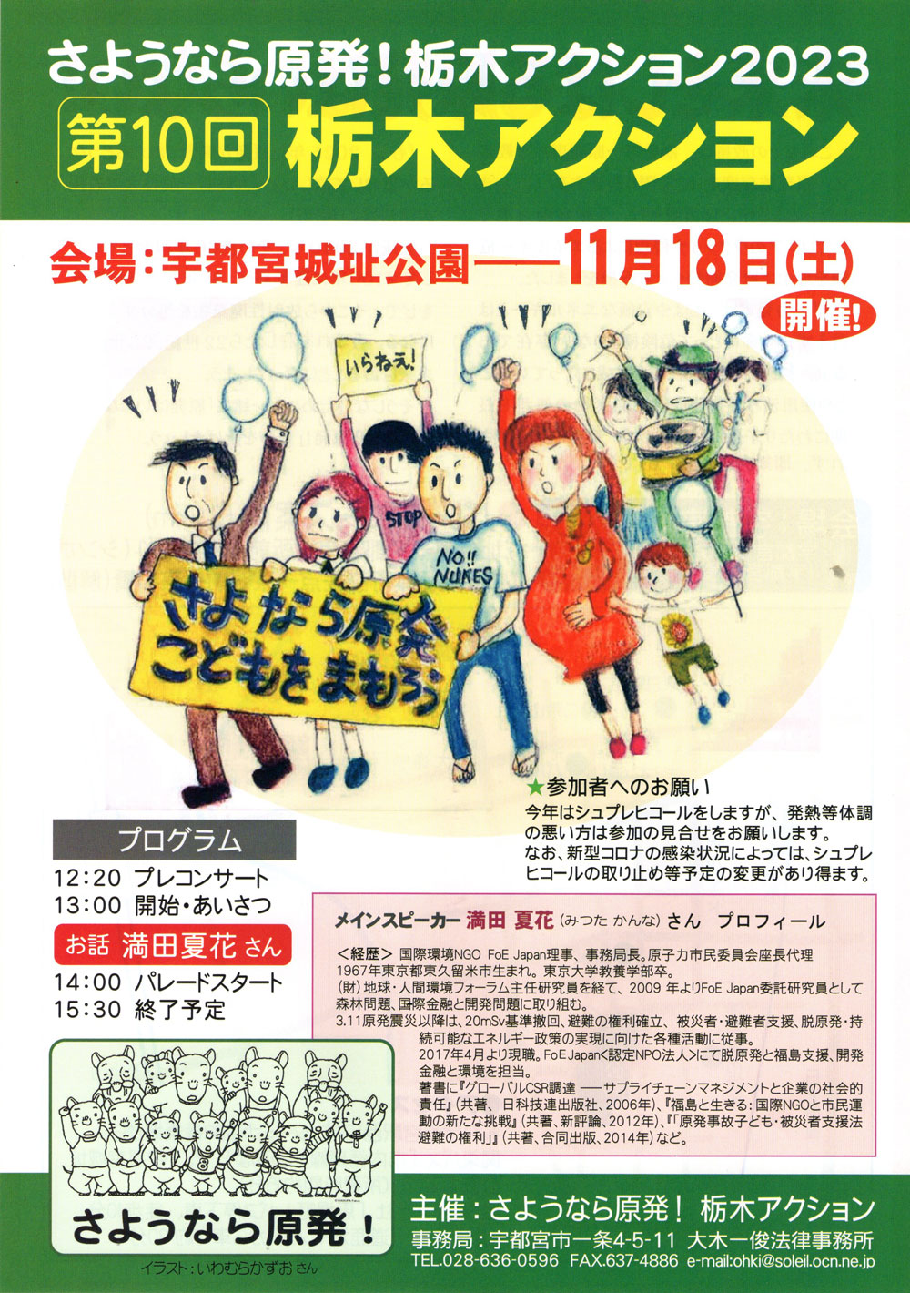 主催:さよなら原発! 栃木アクション 事務局:宇都宮市一条 4-5-11 大木法律事務所