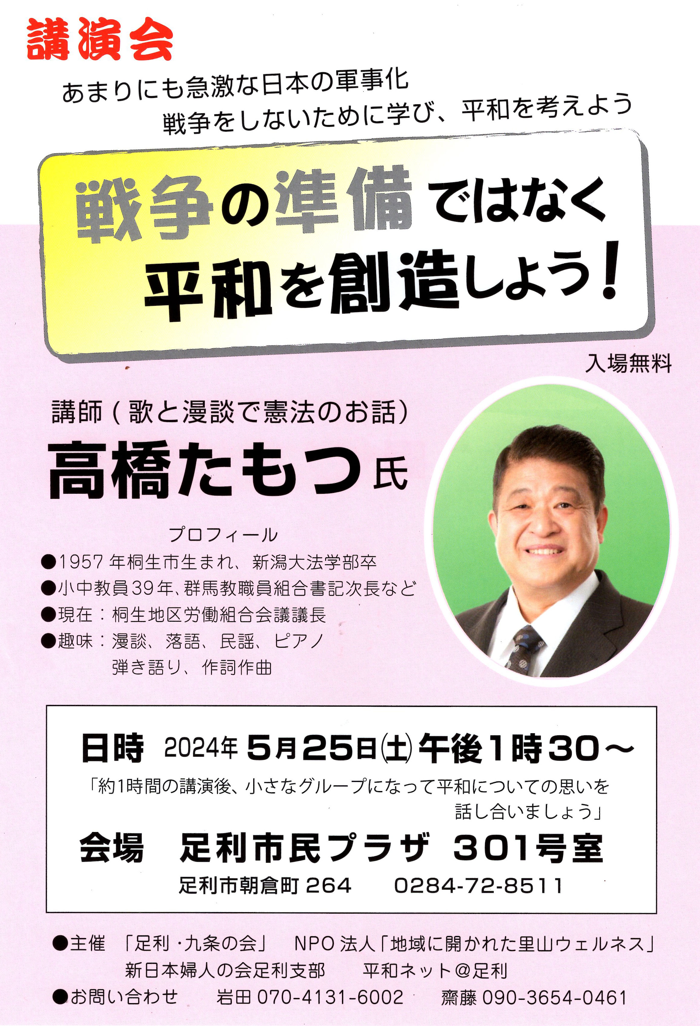 主催: 「足利九条の会」 NPO法人 「地域に開かれた里山ウェルネス」