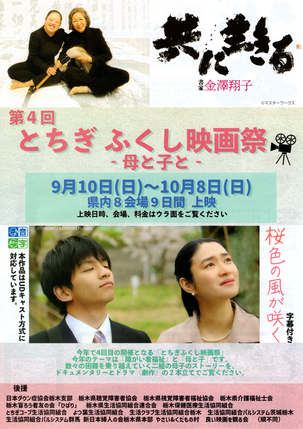 お知らせ 映画「友に生きる 書家 金澤翔子」 映画「桜色の風が咲く」 第4回 とちぎ ふくし 映画祭