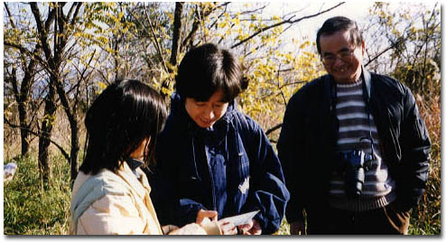 ▲ 野鳥観察会で家族と一緒に 1999年11月(写真提供:おぜき栄子)