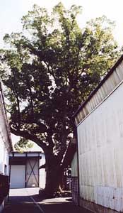 ▲ 樹齢300年の楠(くすのき) この木を囲むように蔵群がある.立ち並ぶ土蔵や瓦の蔵は,桐生の歴史を物語る. |