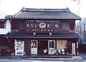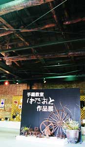 ▲ 今も大切に残っている旧商家. 現役のお店.矢野酒店.写真左に酒蔵群があり,そこがアイディア次第で展示,演劇,コンサート,イベントの会場に変身.この日も手織教室『はたおと』の作品展や(右),アップルというグループのバザーが行われていた. |