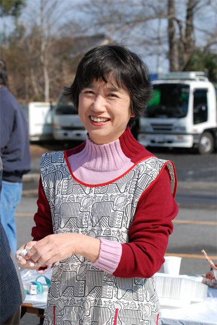 □□□□■ 突立てのお持ちをちぎって辛み餅にするおぜき栄子市議.