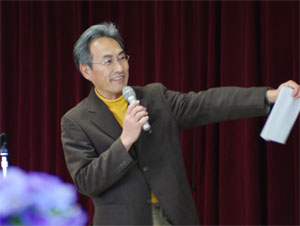 □□■□■ ソフトな語りの司会者.会場がなごみます.