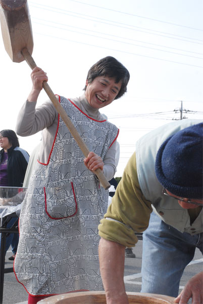 □□□■□ 杵もつ腕がぷるぷる震えてました.命がけのKさん.